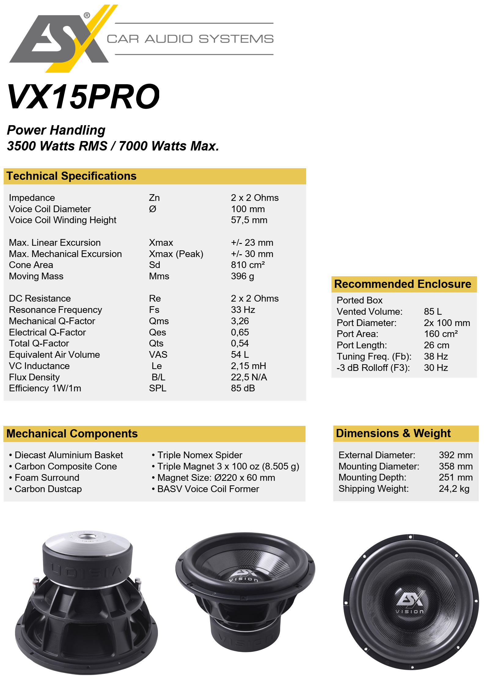 ESX VX15PRO 15 inch inch subwoofer 3500W RMS