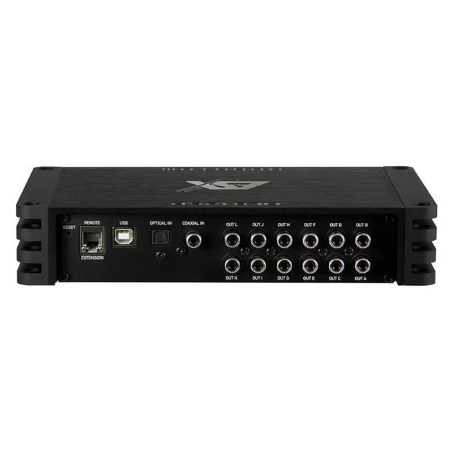 - 12 x RCA/RCA @ 6 V RMS (THD+N <0.0004%) each with 31 band EQ, PEQ / Highshelf / Lowshelf