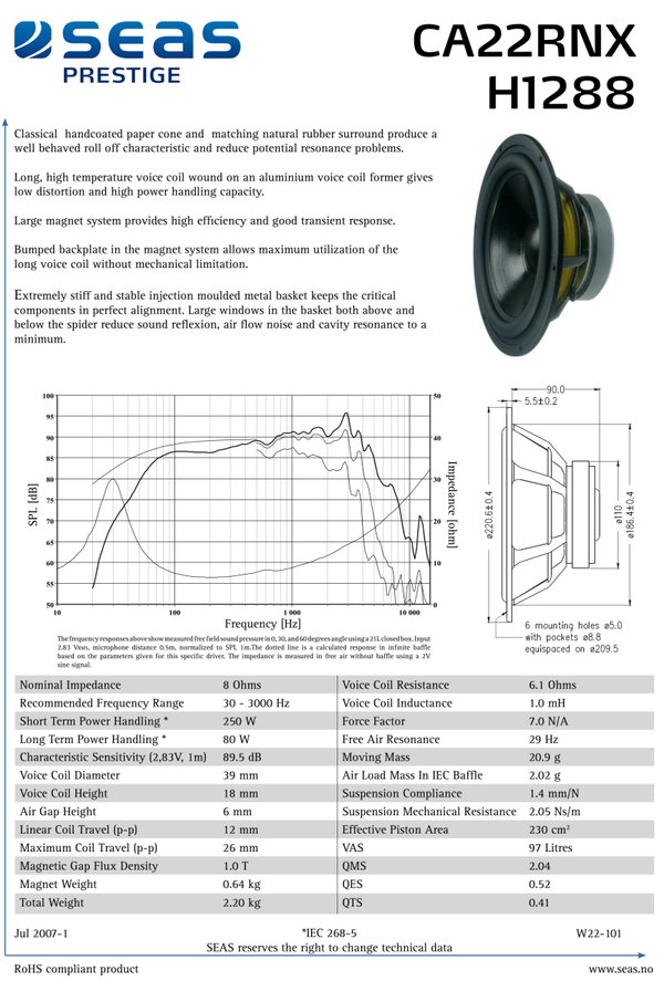 SEAS Prestige CA22RNX - H1288 ( 1x )