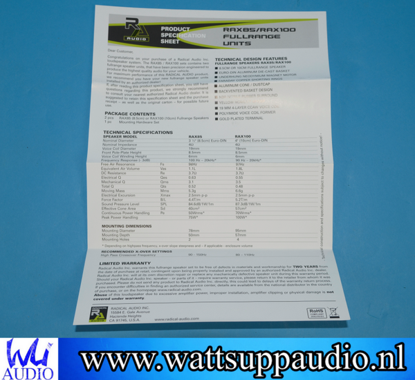 Radical Audio RAX85 Fullrange speakers 85mm
