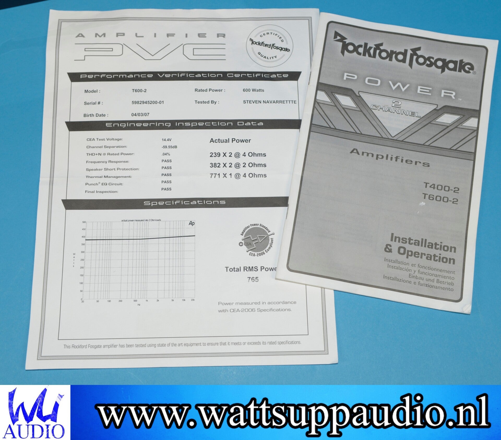 - 2 x 300W RMS @ 2 ohm