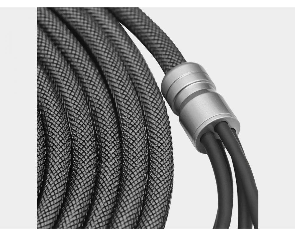 Wrapped with super-durable black nylon braided sheathing to protect the cable from sharp edges and corners.