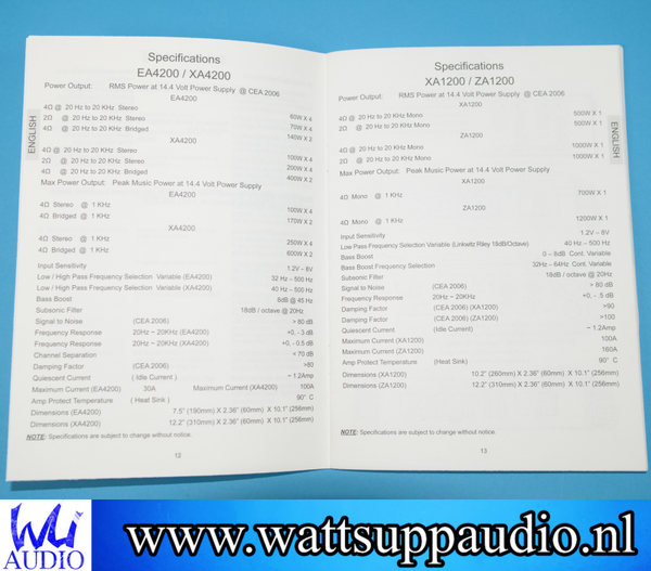 - 1 x 1000W RMS @ 4 ohm ( 14.4V )
